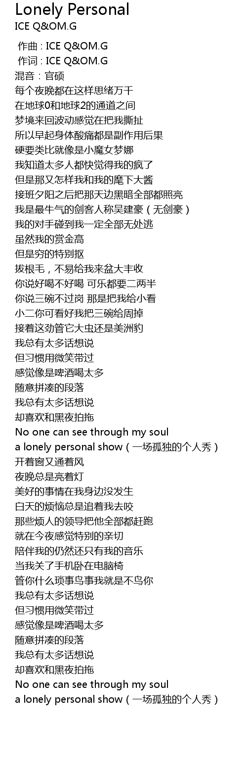 | [00:00.494] | 作词 : ICE Q&OM.G |