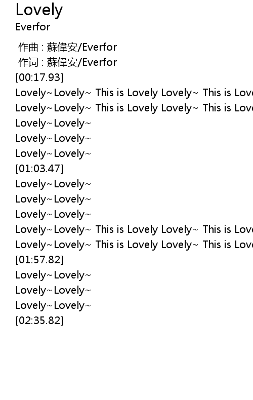 | [01:39.07] | Lovely Lovely This is Lovely Lovely This is Lovely |