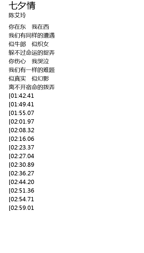 | [00:55.67] | 似牛郎 似织女 |