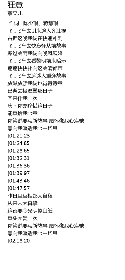 | [02:44.01][01:28.65] | 飞...飞车去快忘怀从前故事 |