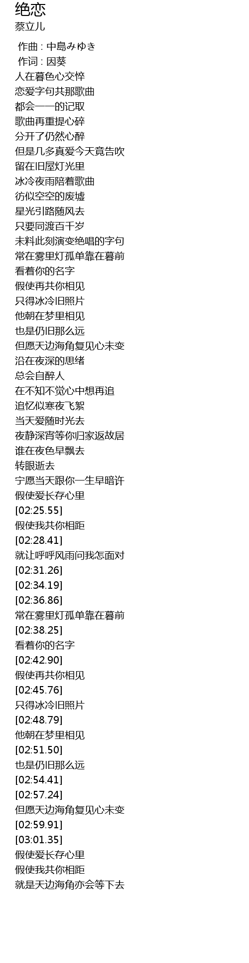 | [02:57.54] | 但愿天边海角复见心未变 |
