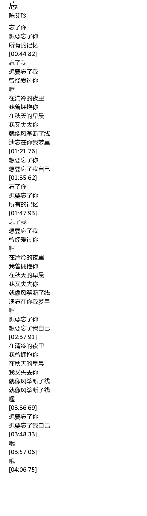 | [01:50.18] | 忘了我 |