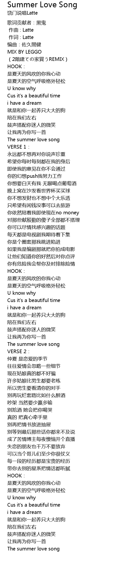 | [00:37.19] | The summer love song |