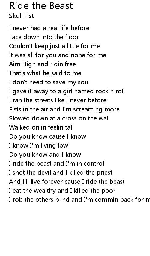 And I'll live forever cause I ride the beast |
