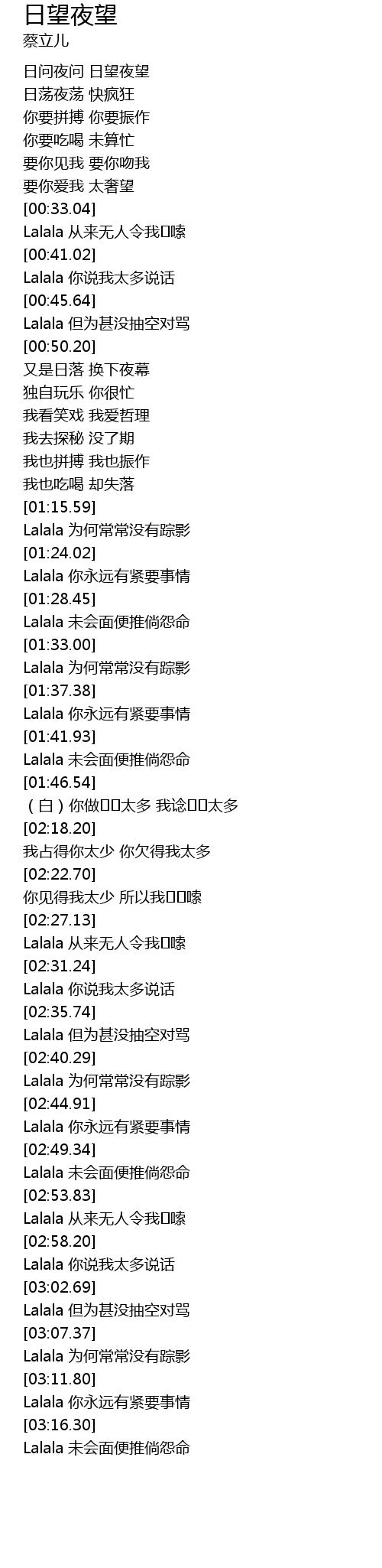| [03:17.11] | Lalala 未会面便推倘怨命 |