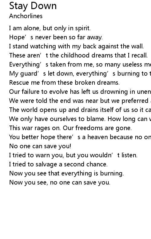 | Song | Stay Down |