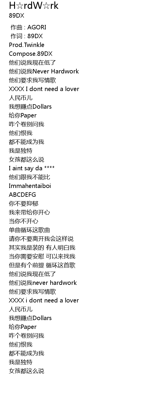 | [00:17.586] | tā men shuō wǒ Never Hardwork |