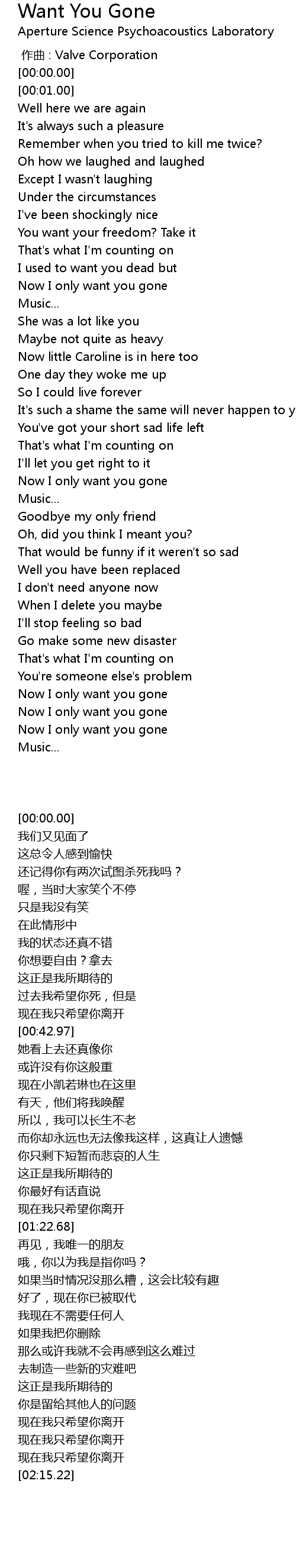 | [00:00.00] | zuo qu : Valve Corporation |