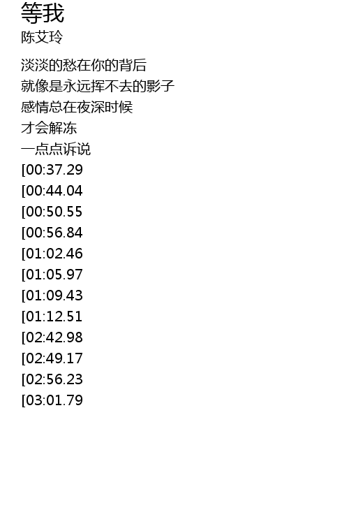 | [03:21.47][02:56.23][01:28.24] | děng wǒ děng wǒ děng wǒ |