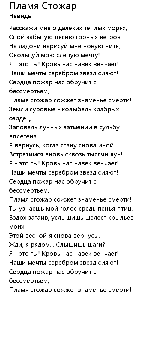 Пламя Стожар  Lyrics