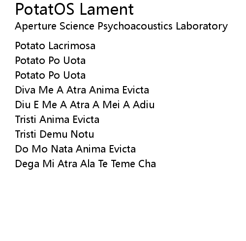 | Song | PotatOS Lament |