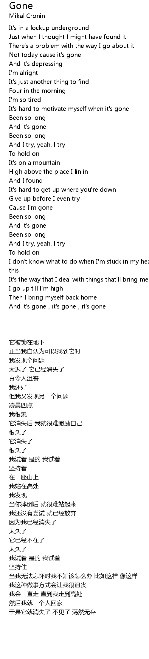 | [01:14.58] | It' s hard to motivate myself when it' s gone |