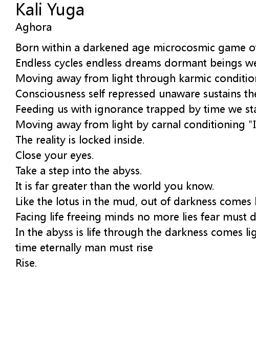 | In the abyss is life through the darkness comes light breaking the frames of time eternally man must rise | |
