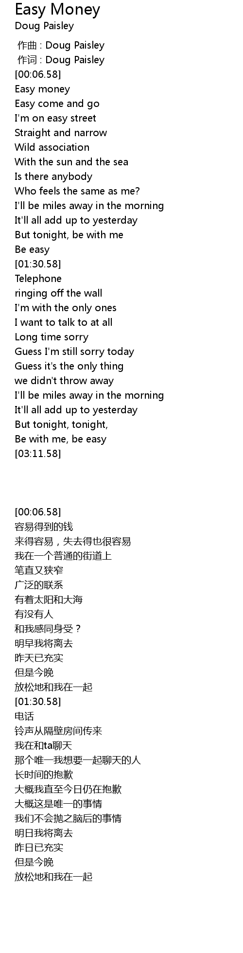 | [00:31.58] | Easy money |