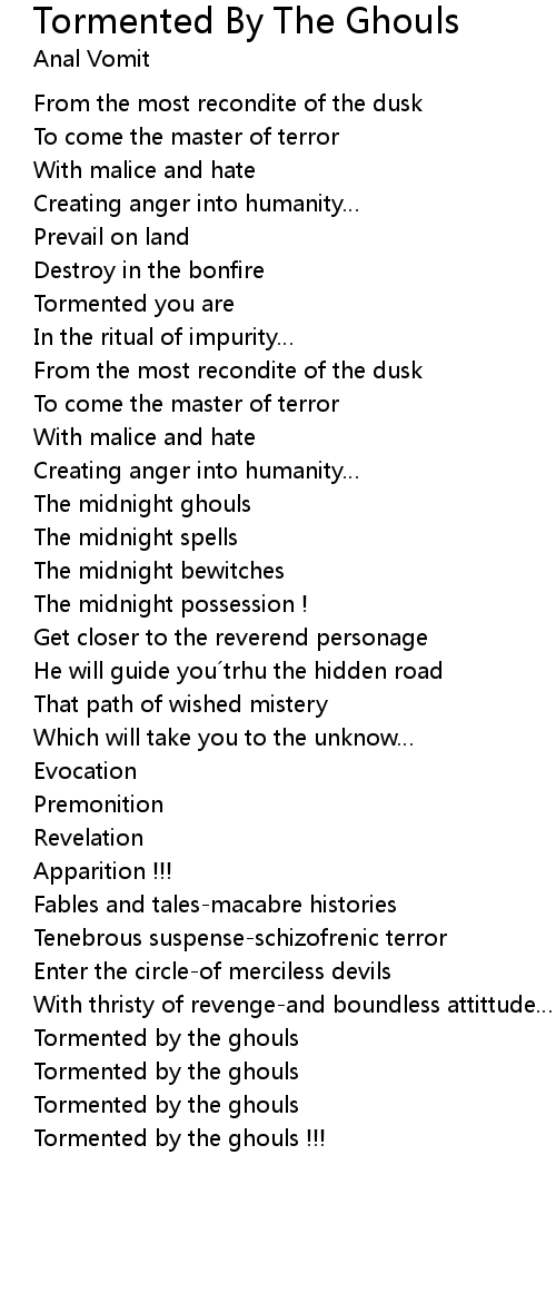 | Tormented by the ghouls | |