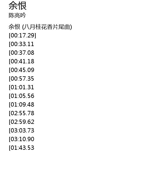| [00:01.00] | 余恨 (八月桂花香片尾曲) |