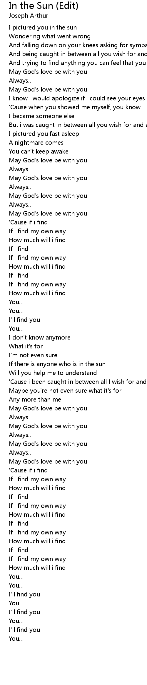 | [00:01] | I pictured you in the sun |