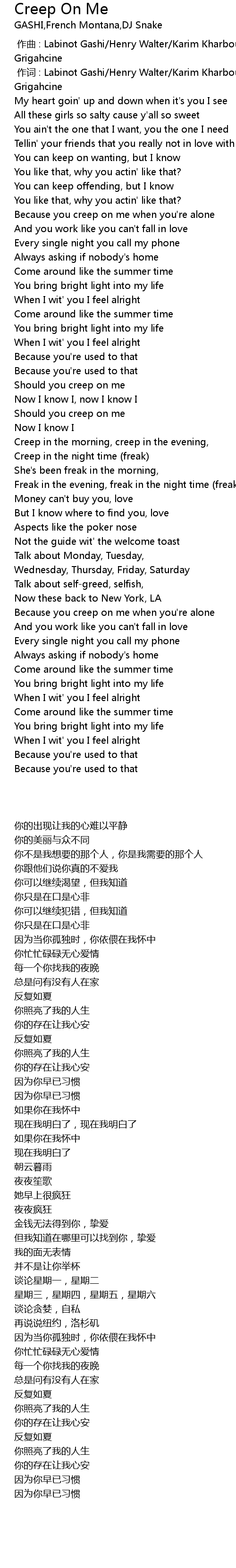 | [01:49.76] | Creep in the morning, creep in the evening, |