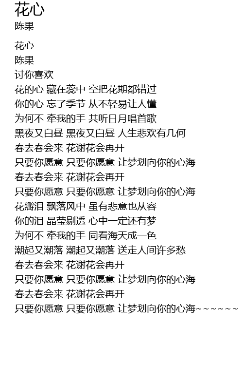| [00:43.24] | 花的心 藏在蕊中 空把花期都错过 |