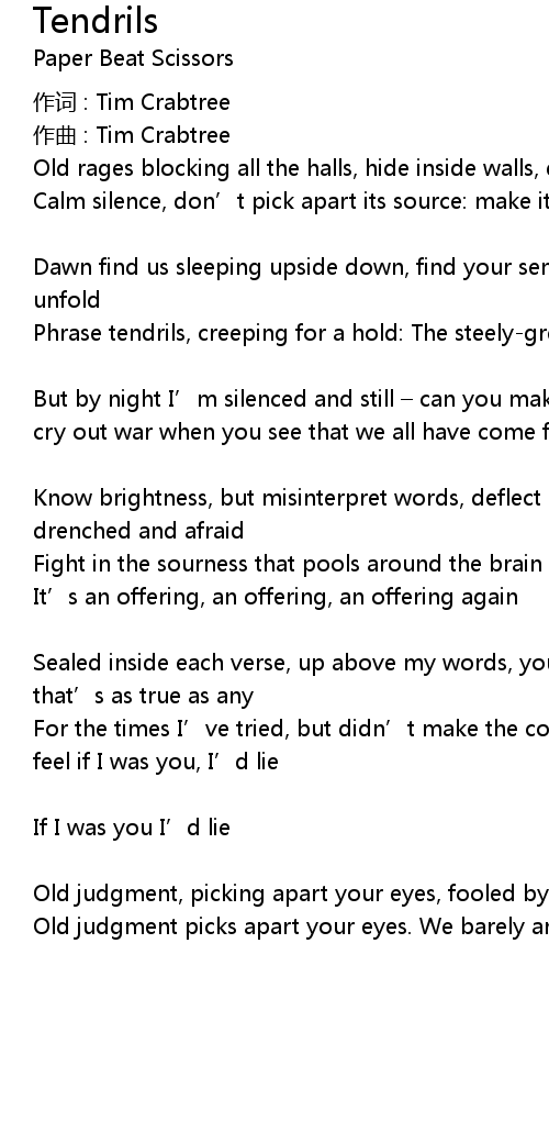 | For the times I’ve tried, but didn’t make the connection, and I’m left to feel if I was you, I’d lie | |