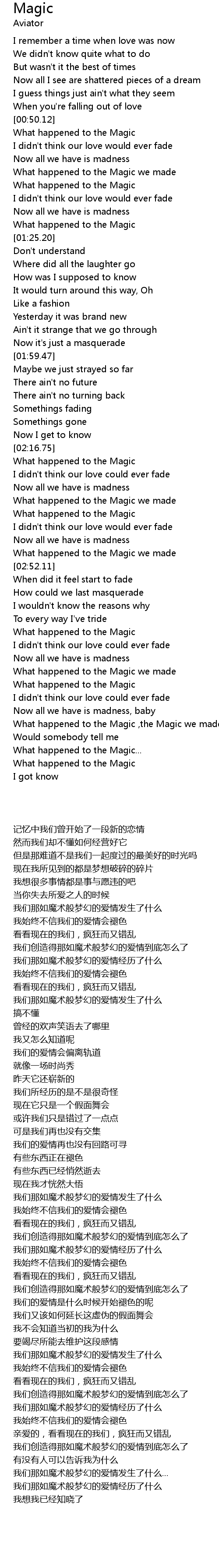 | [03:38.37] | What happened to the Magic ,the Magic we made |