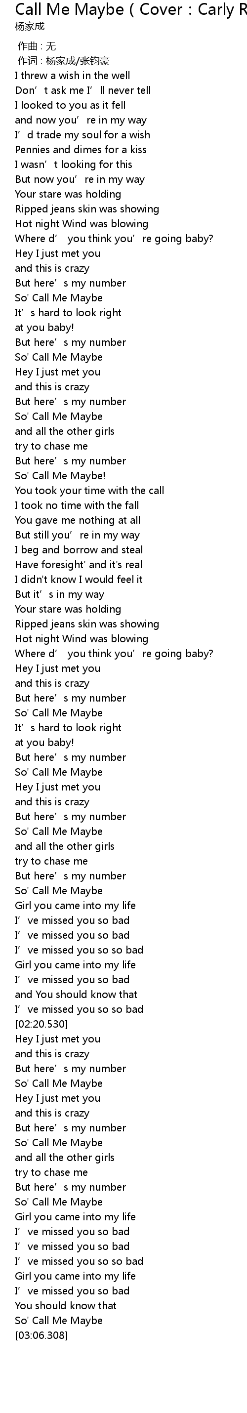 | [03:03.185] | So' Call Me Maybe |