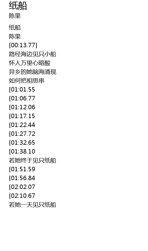 | [02:34.74][01:01.55] | shí qǐ zhāng zhǐ zhé zhǐ xiǎo chuán |