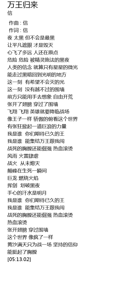 | [02:34.56] | 我是谁 能集结万王跟我闯 |