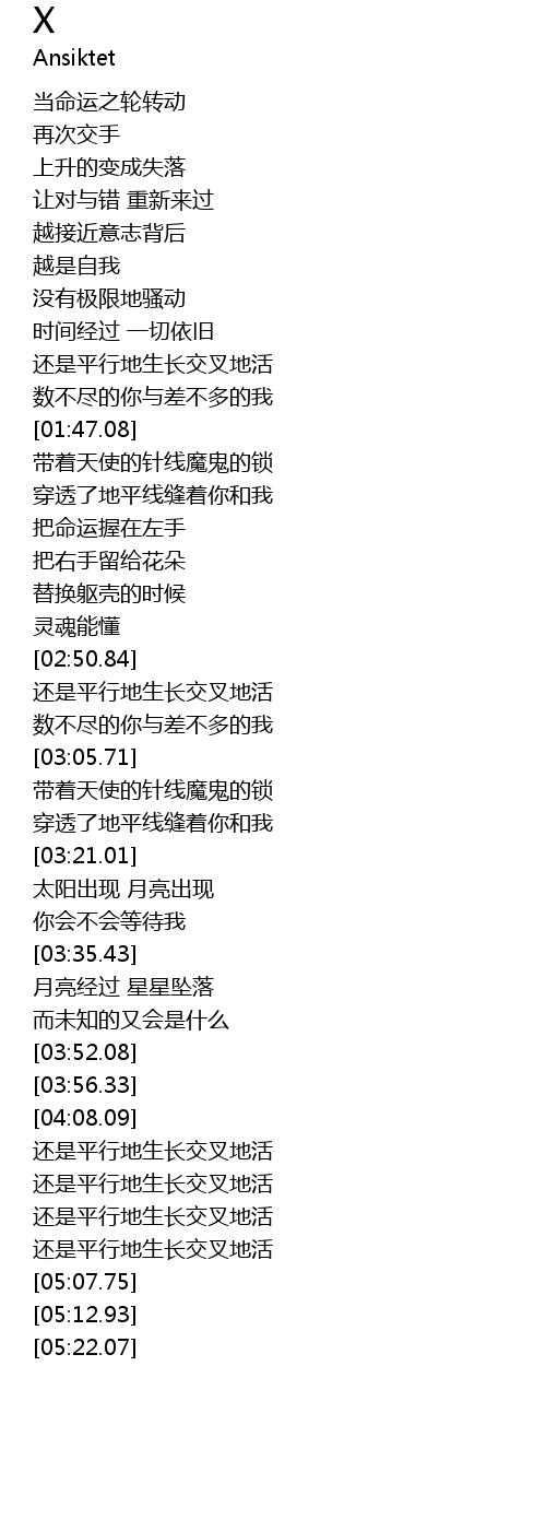 | [04:44.74] | 还是平行地生长交叉地活 |