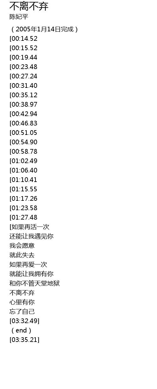 | [00:12.00] | 2005 nián 1 yuè 14 rì wán chéng |