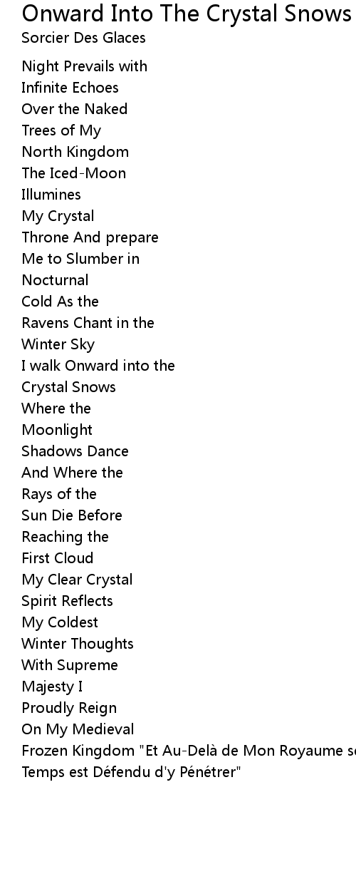 | Frozen Kingdom " Et AuDela de Mon Royaume se trouve la Montagne Ou m me le Temps est De fendu d' y Pe ne trer" |