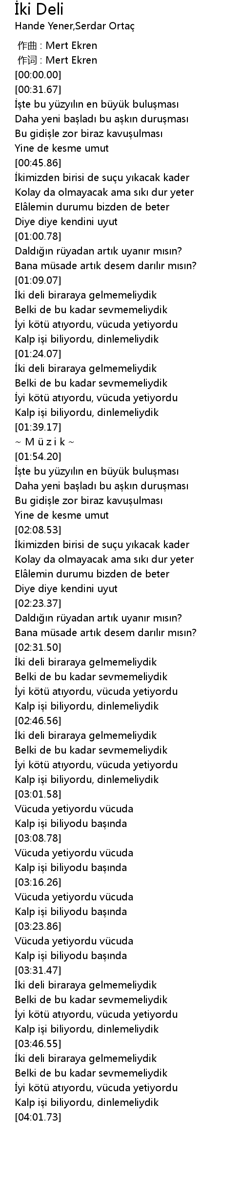 | [00:00.000] | zuò cí : Mert Ekren |