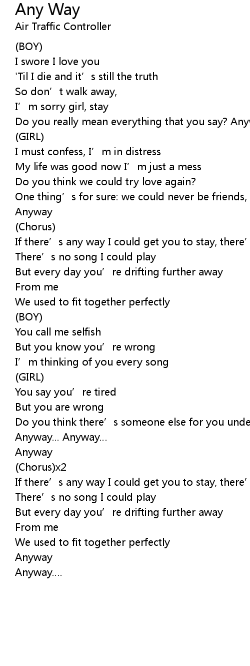| If there' s any way I could get you to stay, there' s no words I could say, | |