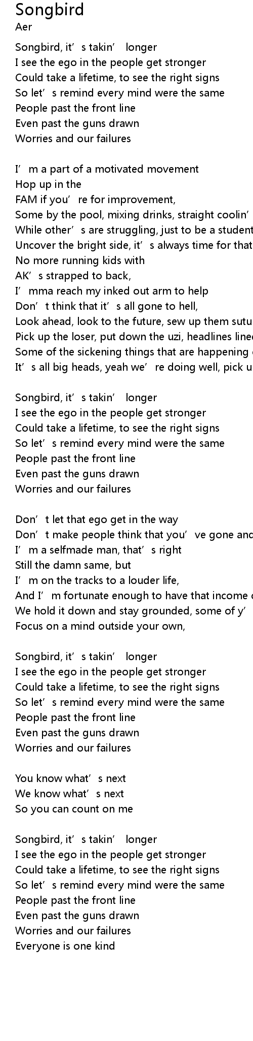 | It’s all big heads, yeah we’re doing well, pick up the slack and take on what’s next [Chorus – David] | |