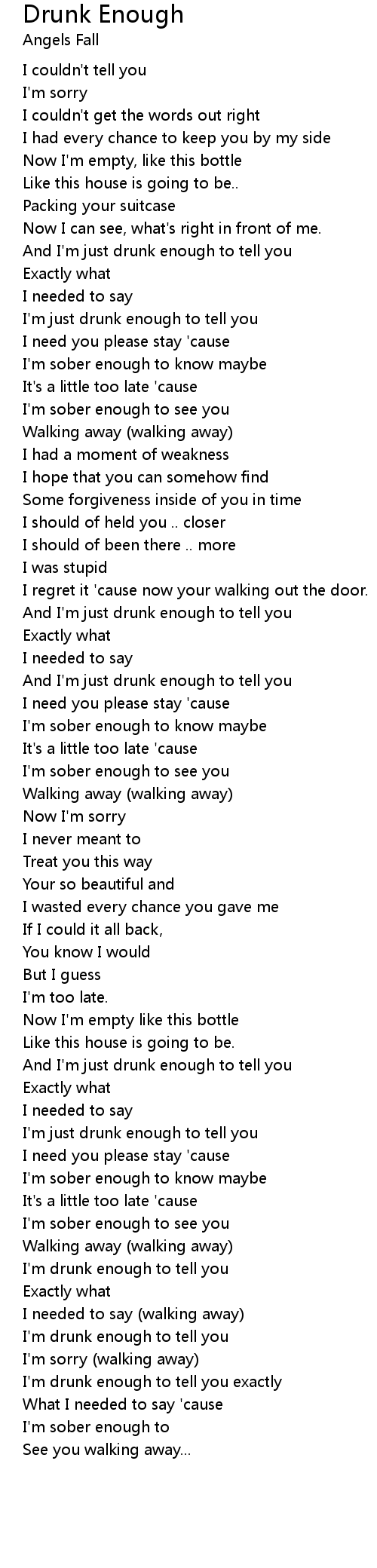 And I'm just drunk enough to tell you |
