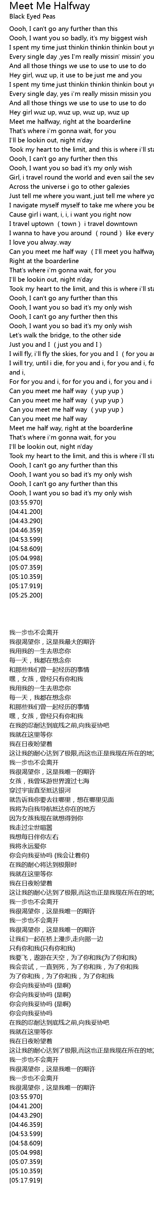 | [01:42.200] | Can you meet me half way I' ll meet you halfway |
