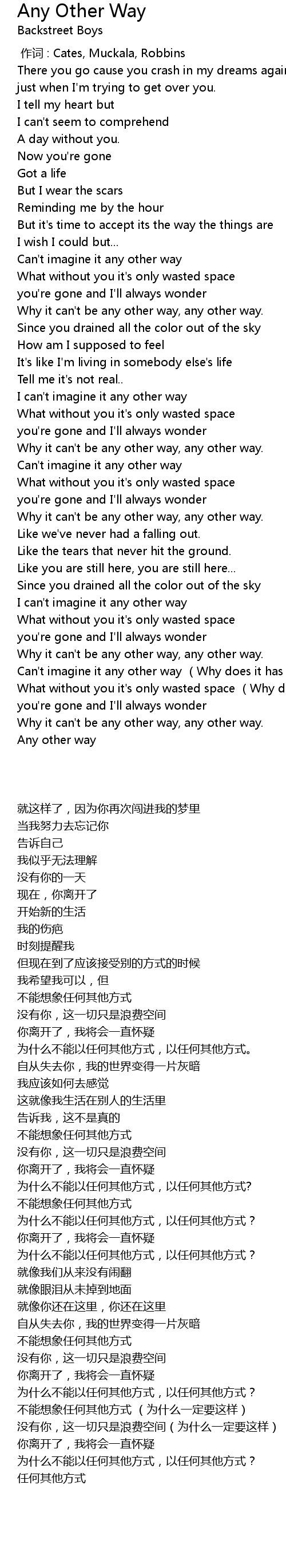 | [01:45.380] | Why it can' t be any other way, any other way. |