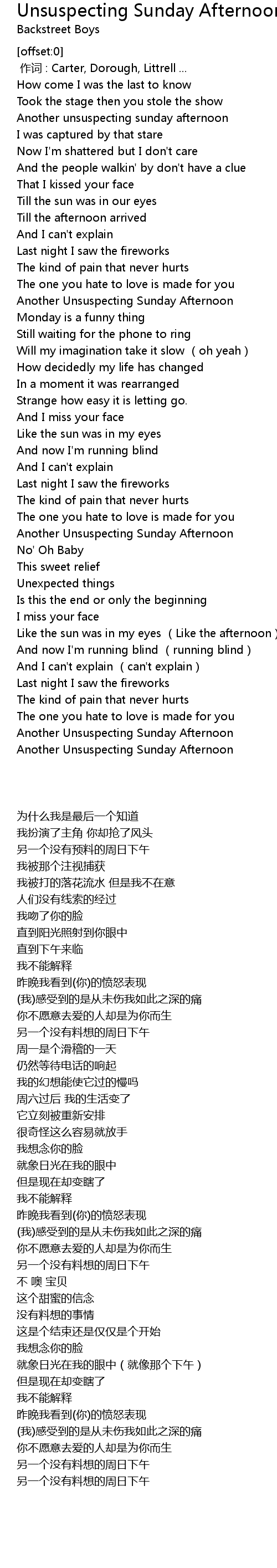 | [01:58.99] | Another Unsuspecting Sunday Afternoon |
