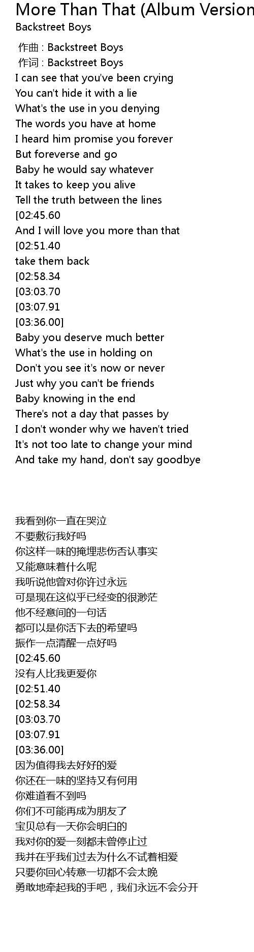 | [00:00.00] | 作曲 : Backstreet Boys |