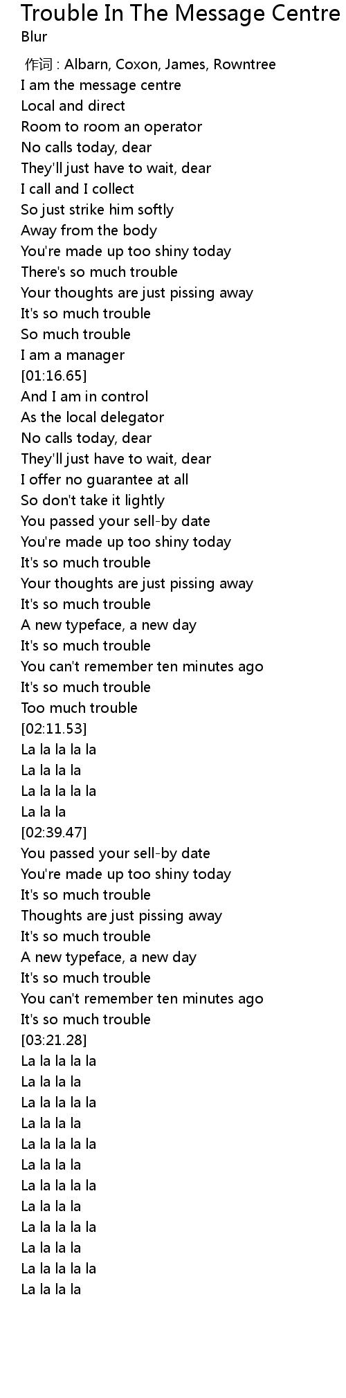 | [00:00.00] | zuò cí : Albarn, Coxon, James, Rowntree |