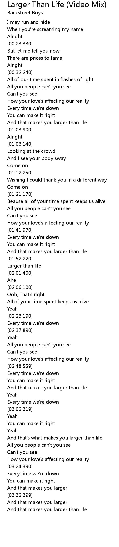| [03:09.369] | And that' s what makes you larger than life |