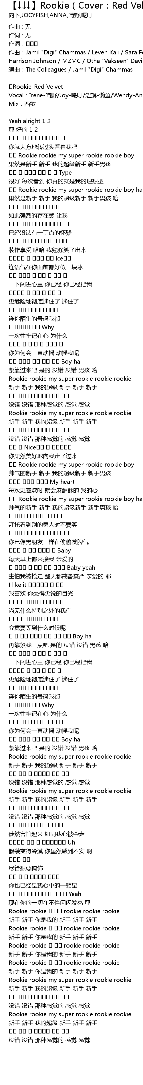 | Vocal:Irene-晴野/Joy-嘠叮/涩琪-懒鱼/Wendy-Anna/Yeri-向下 | |