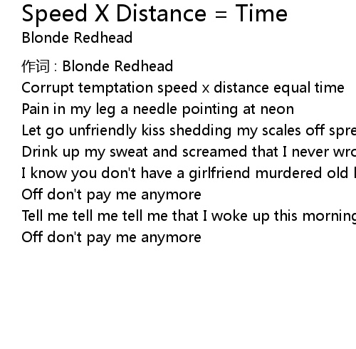 | Song | Speed X Distance = Time |