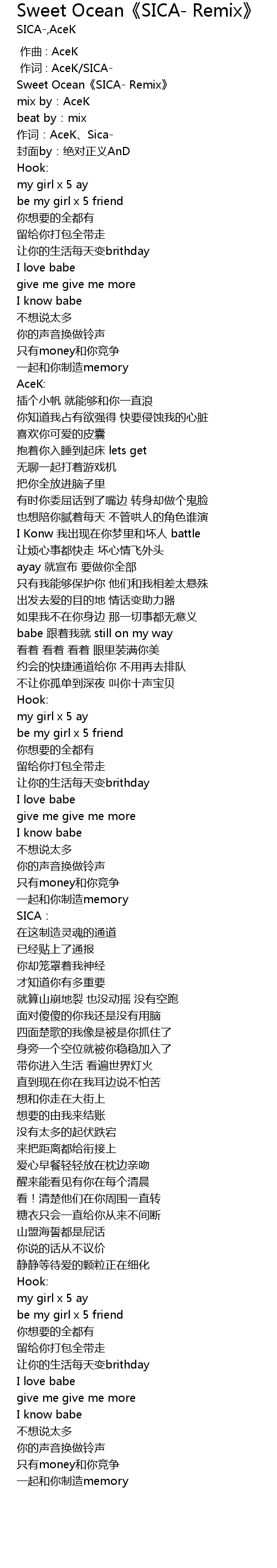 | [00:00.364] | 作词 : AceK/SICA- |