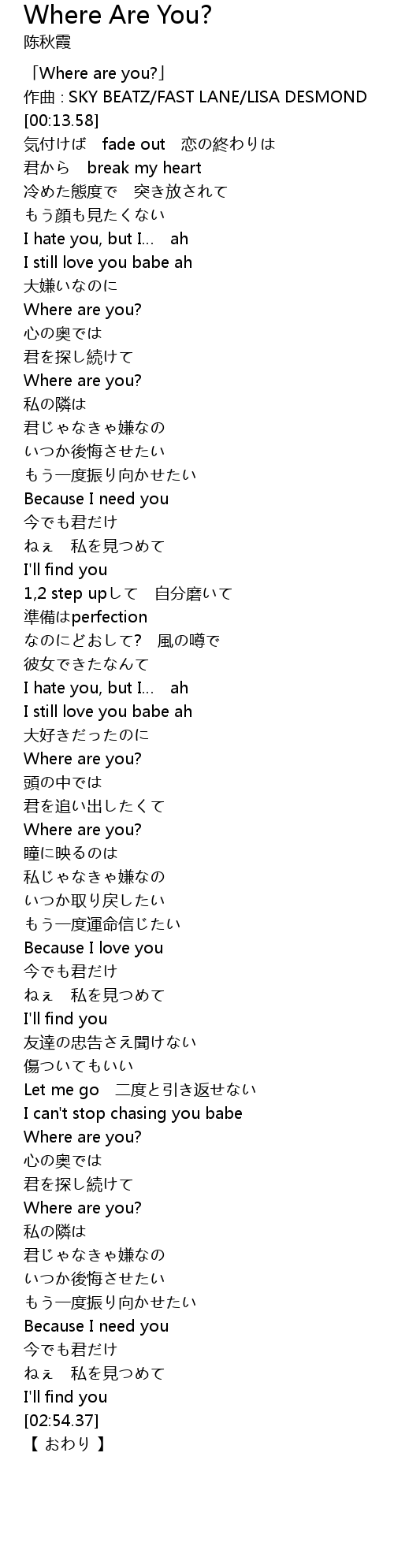 | [00:01.58] | 「Where are you?」 |