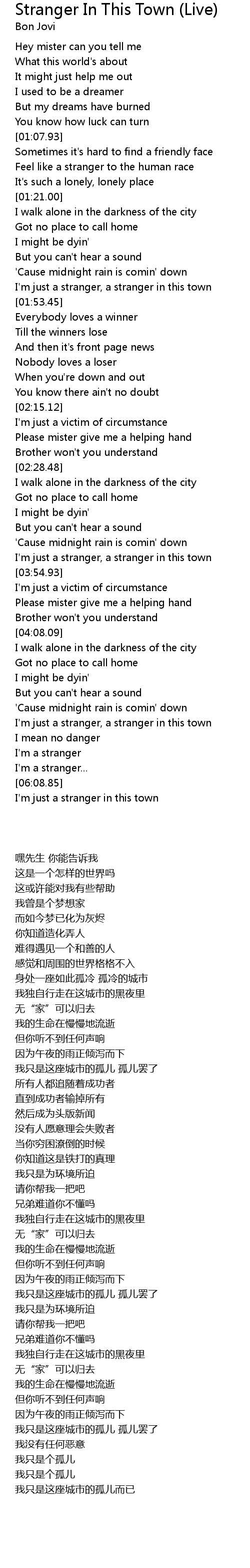 I'm just a stranger, a stranger in this town |