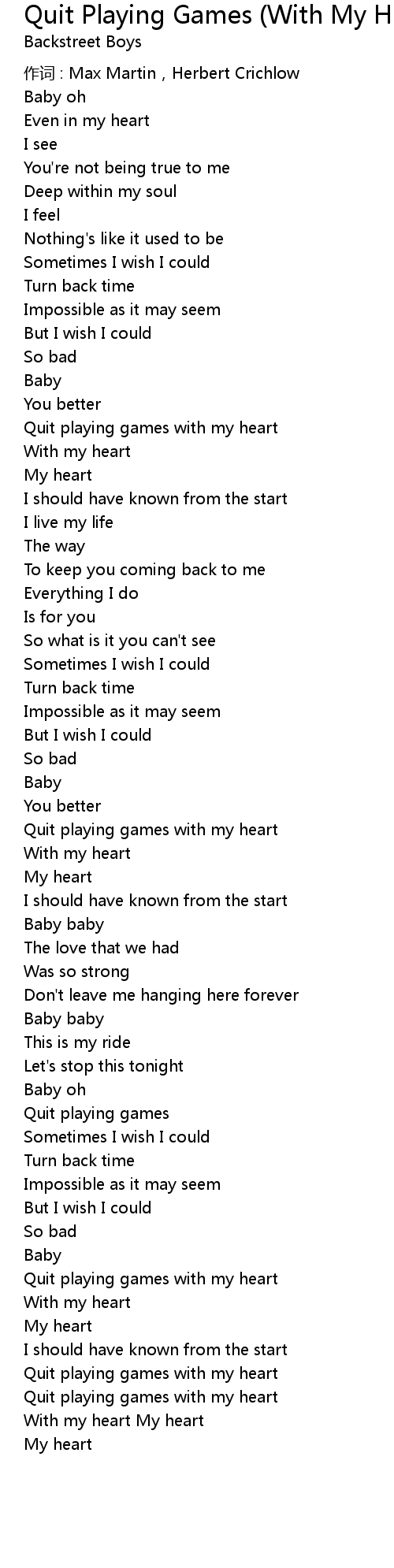 | Quit playing games with my heart | |