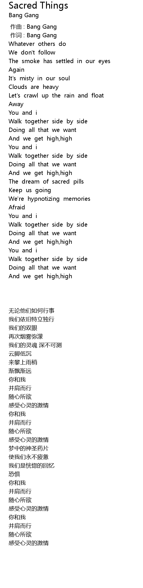 | [00:01.00] | zuò cí : Bang Gang |