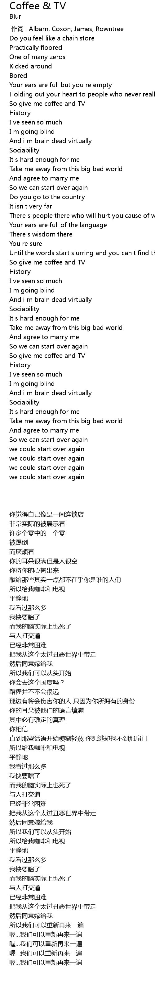 | [00:00.00] | zuò cí : Albarn, Coxon, James, Rowntree |