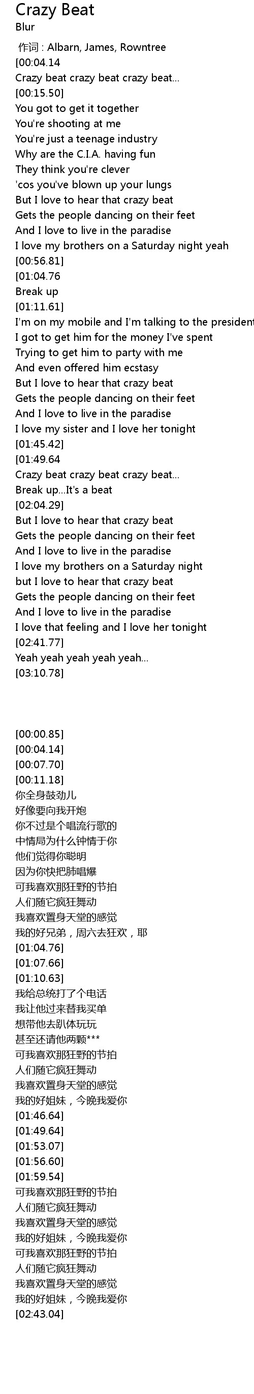 | [01:56.60] | Crazy beat crazy beat crazy beat... |